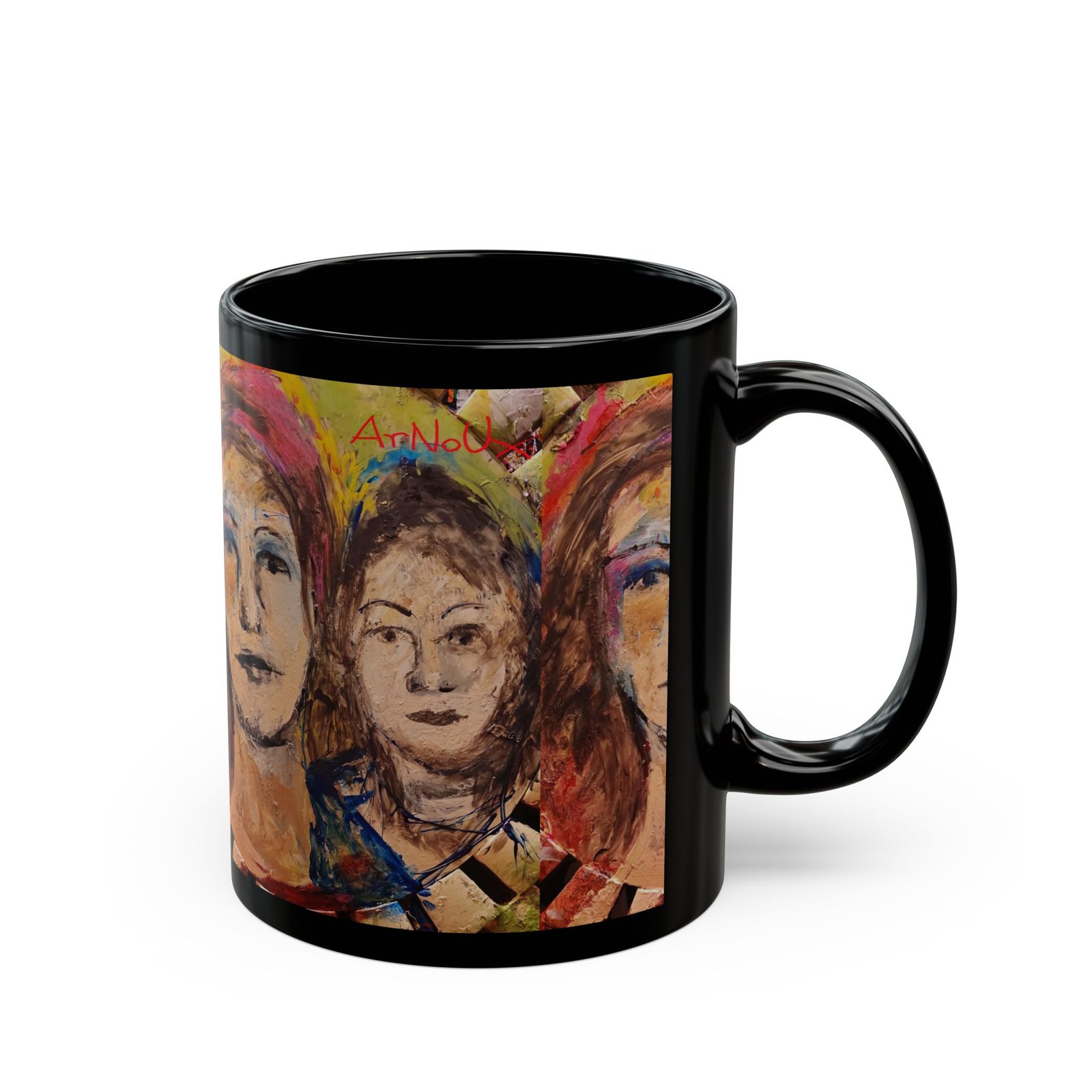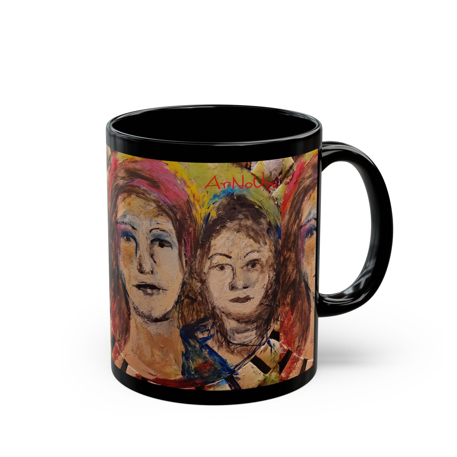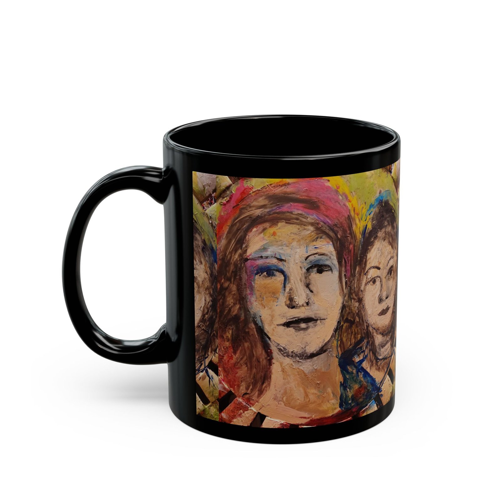 This black ceramic mug brings a splash of expressive, hand-painted warmth to every slow morning and late-night sketch session. The glossy black finish makes colors pop—rich reds, warm ochres, and soft blues—so the faces and painterly brushstrokes feel alive as you sip. It sits comfortably in your hand thanks to the C-shaped handle and holds either an everyday 11oz pour or a generous 15oz cuppa. Whether used at a cluttered artist desk, a cozy reading nook, or on the kitchen counter during winter gatherings, the mug adds character and a quietly artistic mood to ordinary moments.