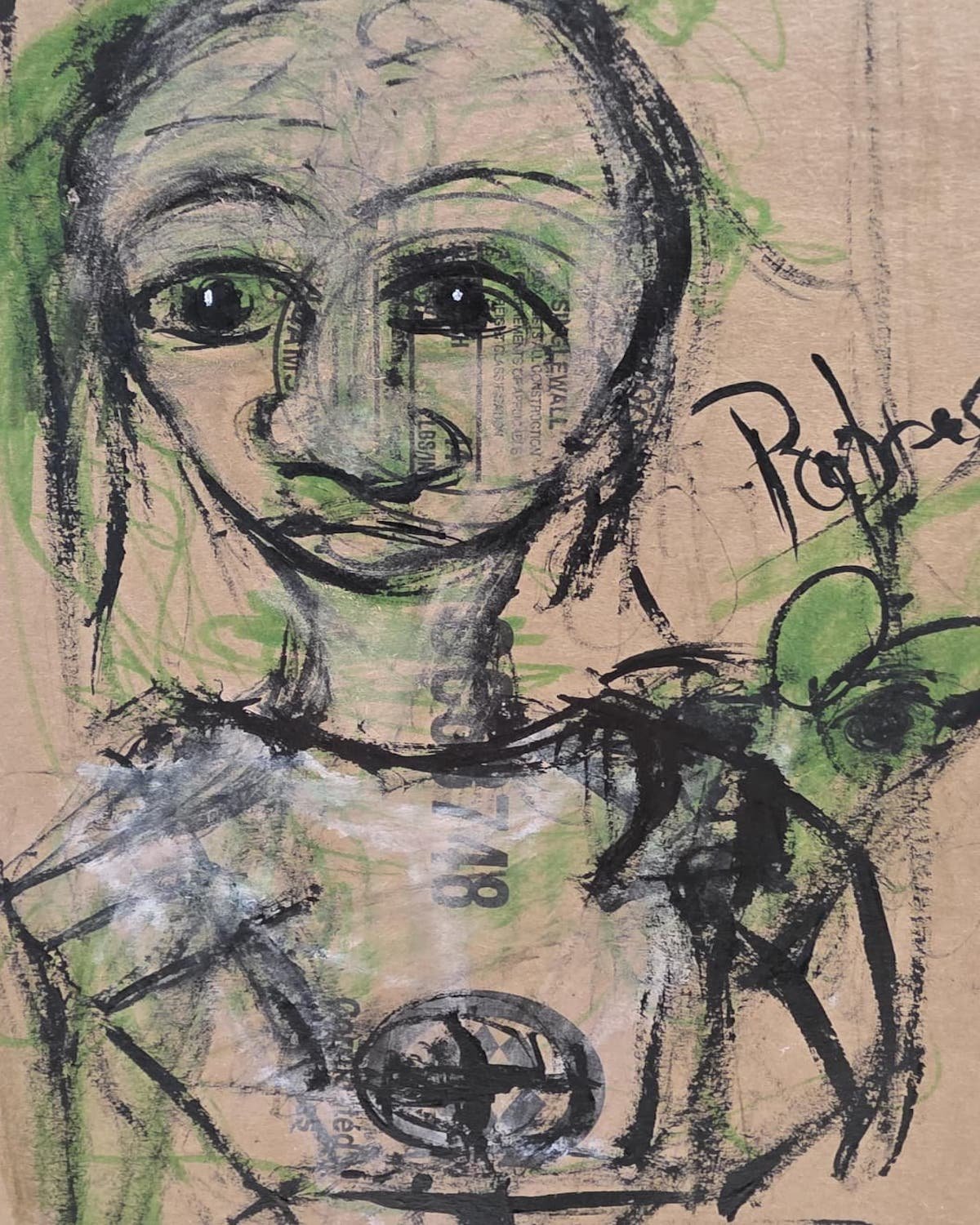 Medium: Mixed Media (pen, face rouge, Bible markers on recycled cardboard)