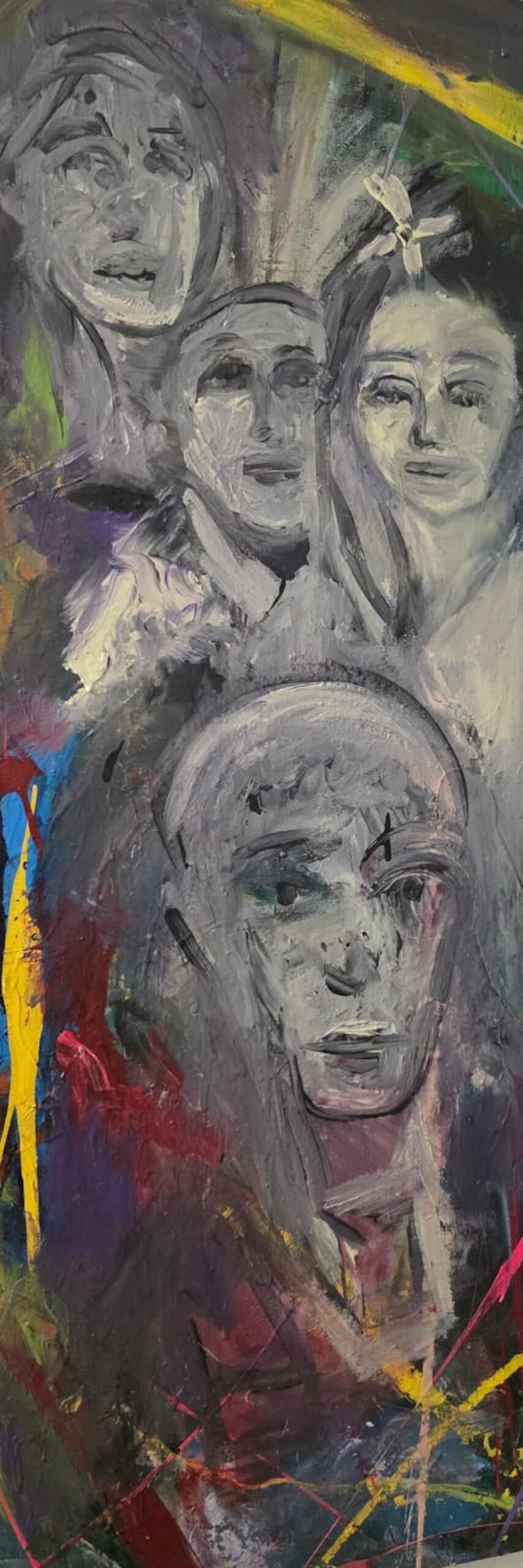 Carved Angels presents vertically layered angelic figures defined not by physical form but by spiritual presence. The work reflects the belief that the divine is revealed through the soul rather than appearance. Executed in a German Expressionist language, the visible brushwork and overlapping faces suggest angels as timeless messengers shaped by faith, endurance, and human experience