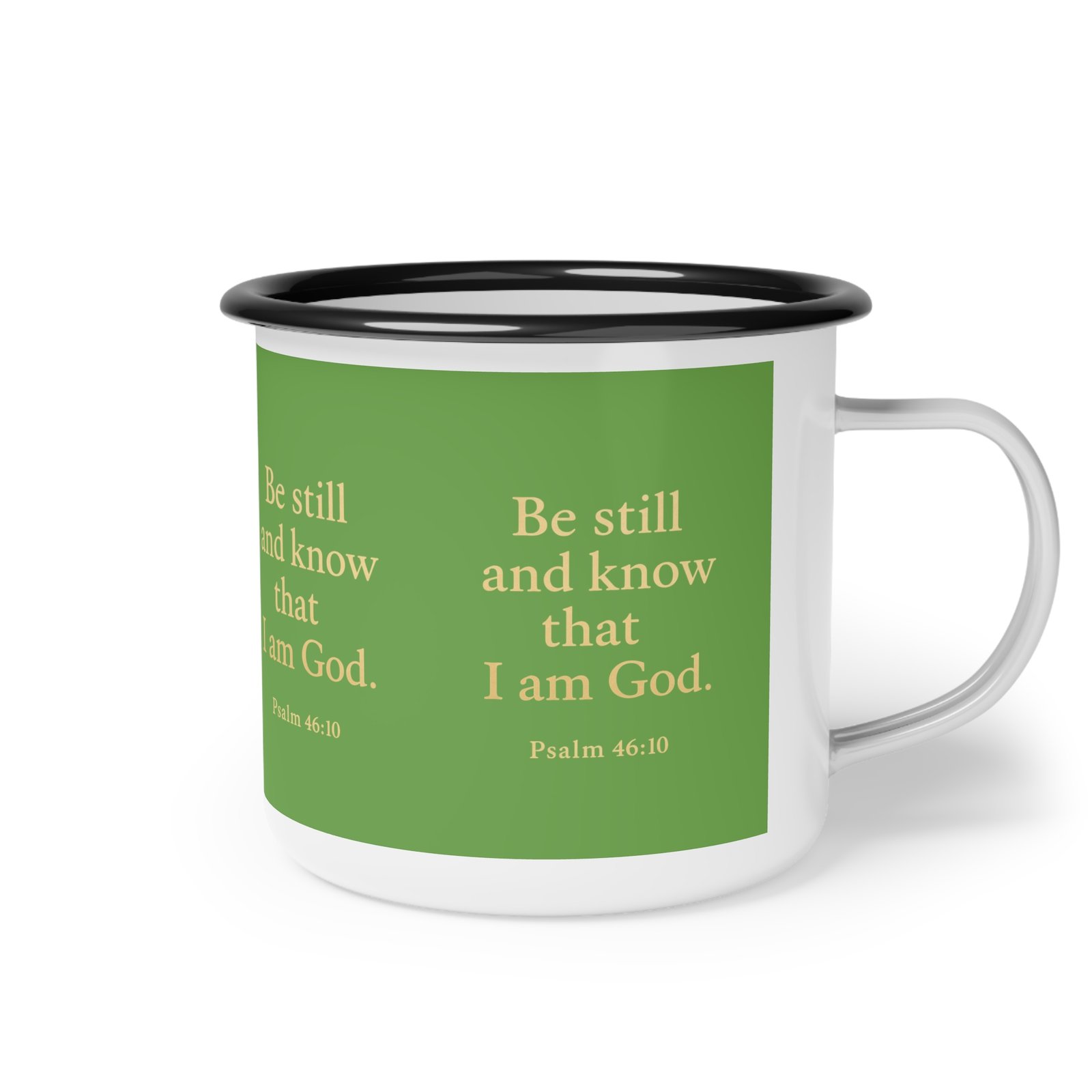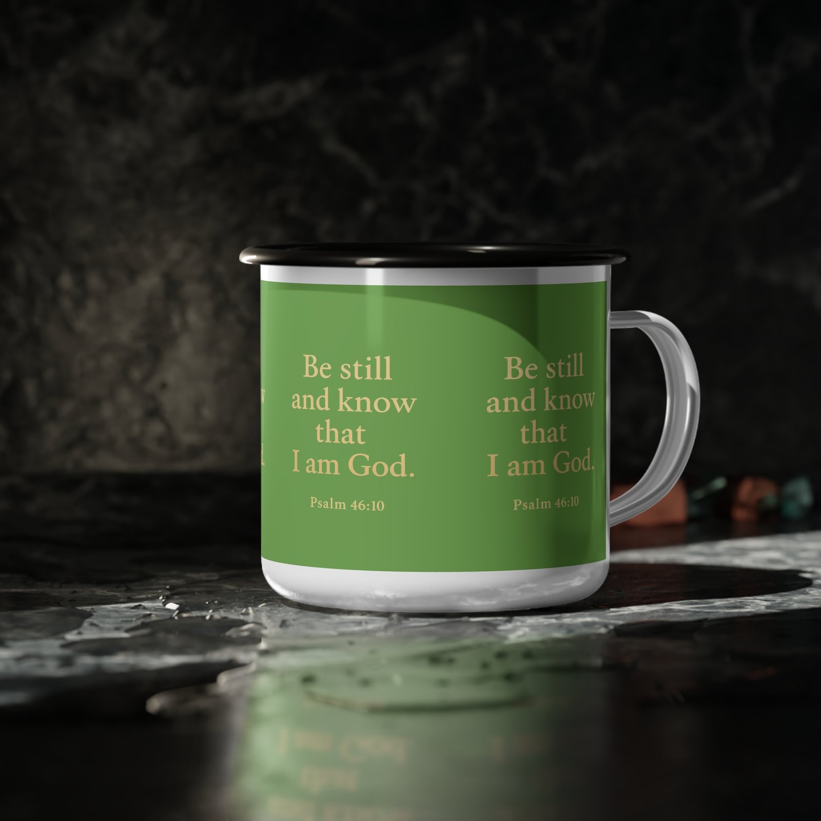 Enamel Camp Cup — “Be Still and Know I Am God” Psalm 46:10 Inspirational Camping Mug