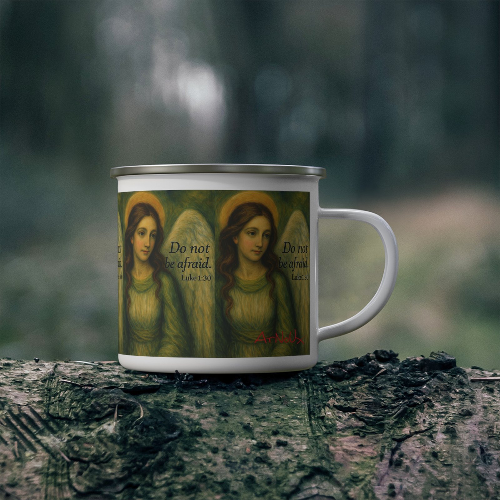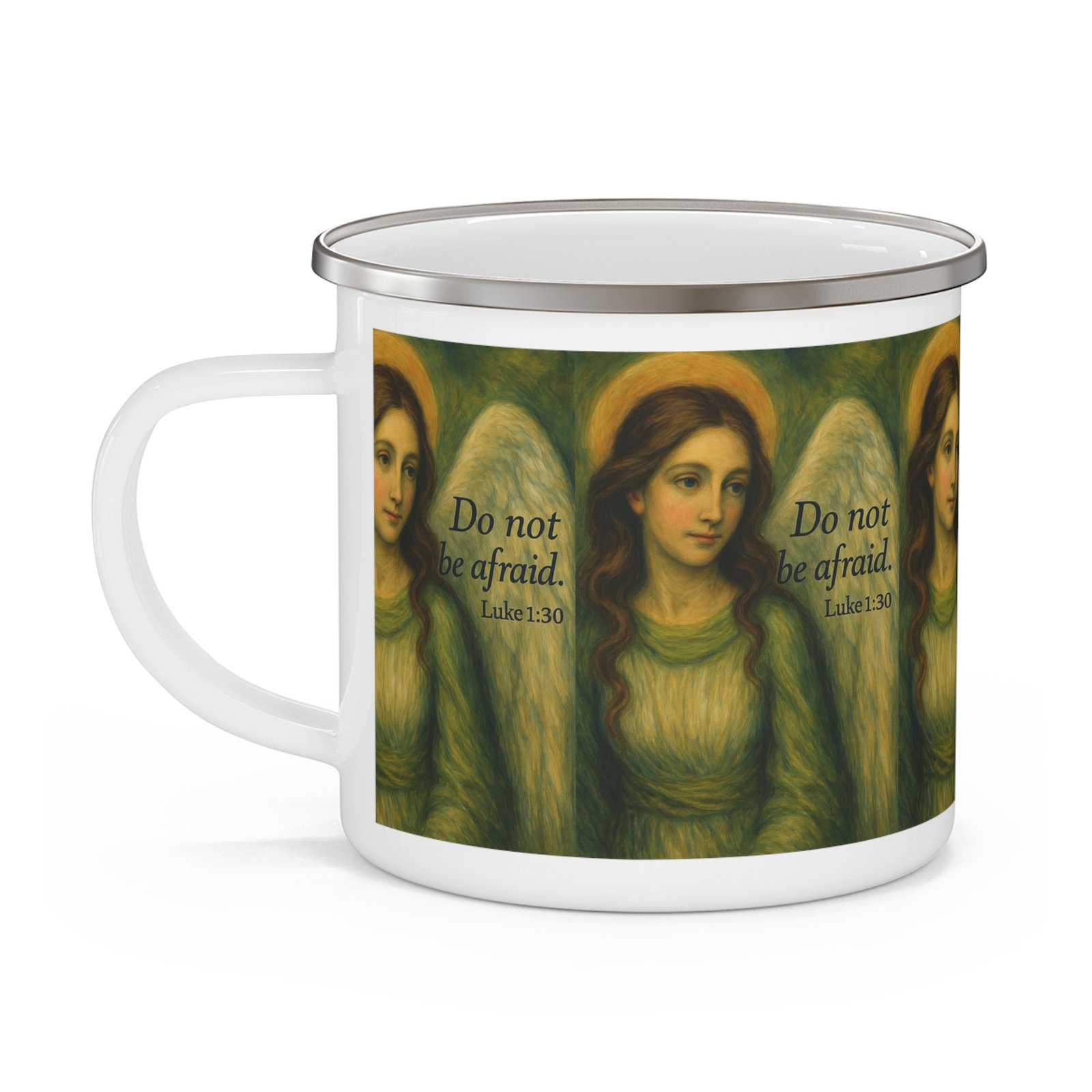 Be the first to review “Enamel Mug — Angel Illustration with “Do Not Be Afraid” (Luke 1:30) — Inspirational Camping Cup”