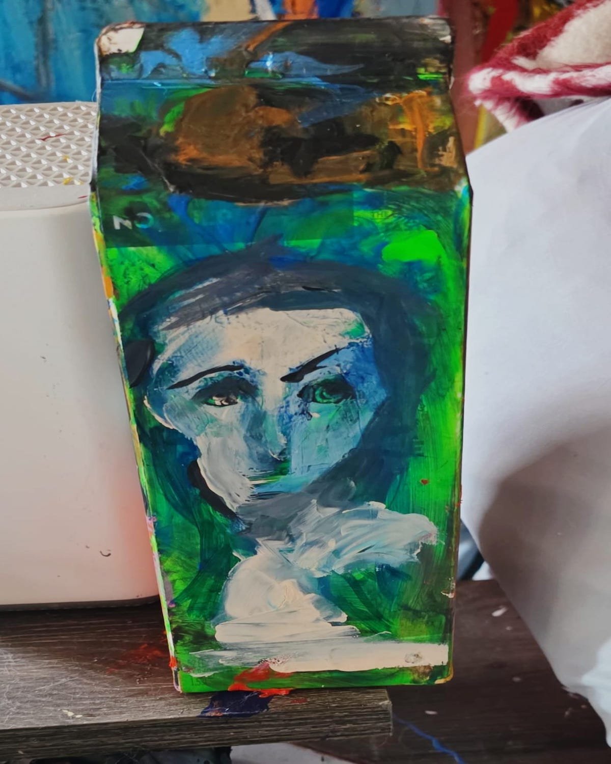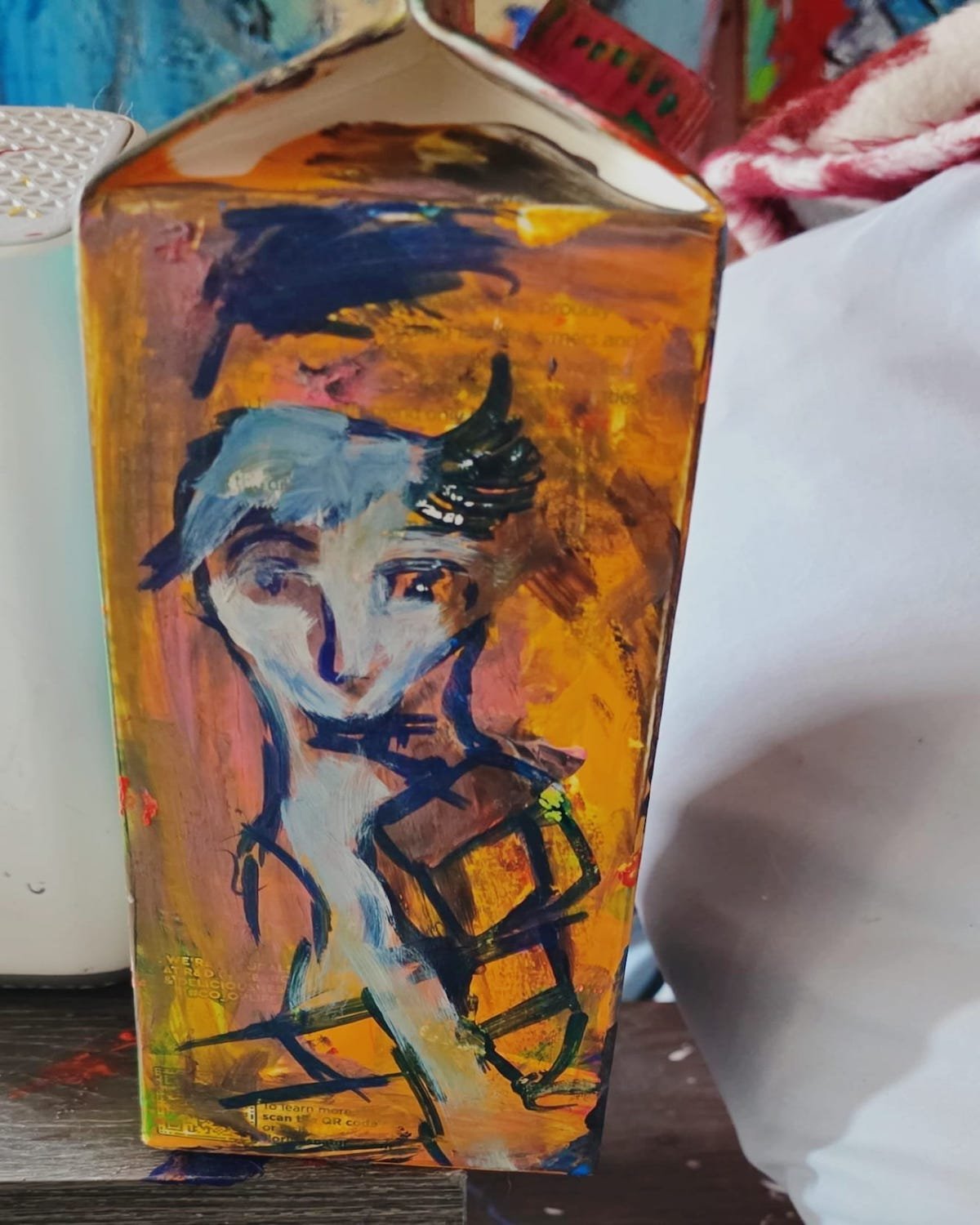Medium: Acrylic on recycled orange-juice carton (Recyclable Art)