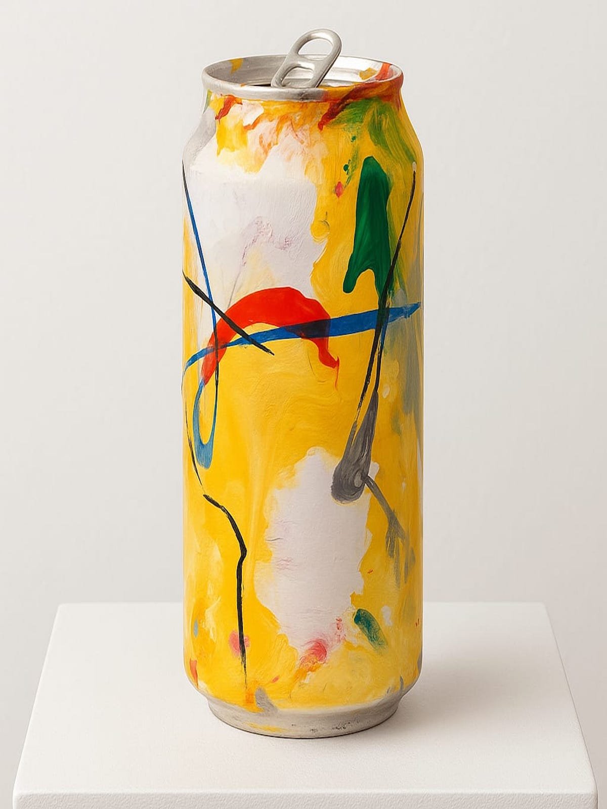 Fireworks by ArNoUx transforms an everyday Coca-Cola can into a burst of expressive abstraction. In this piece, the artist channels the explosive joy and chaos of celebration — paint cascades in fiery yellows, reds, and greens, intertwining with electric lines of blue.