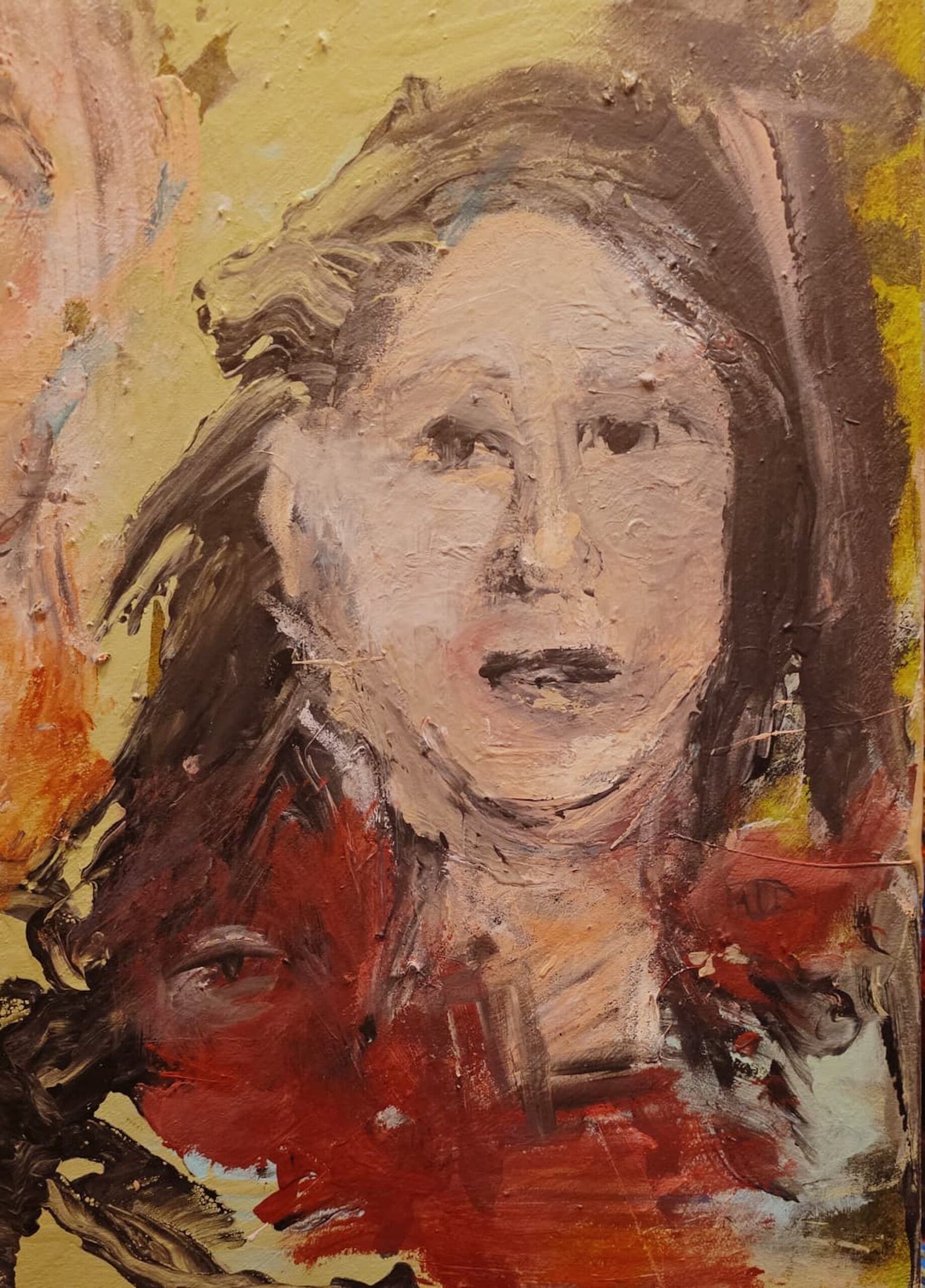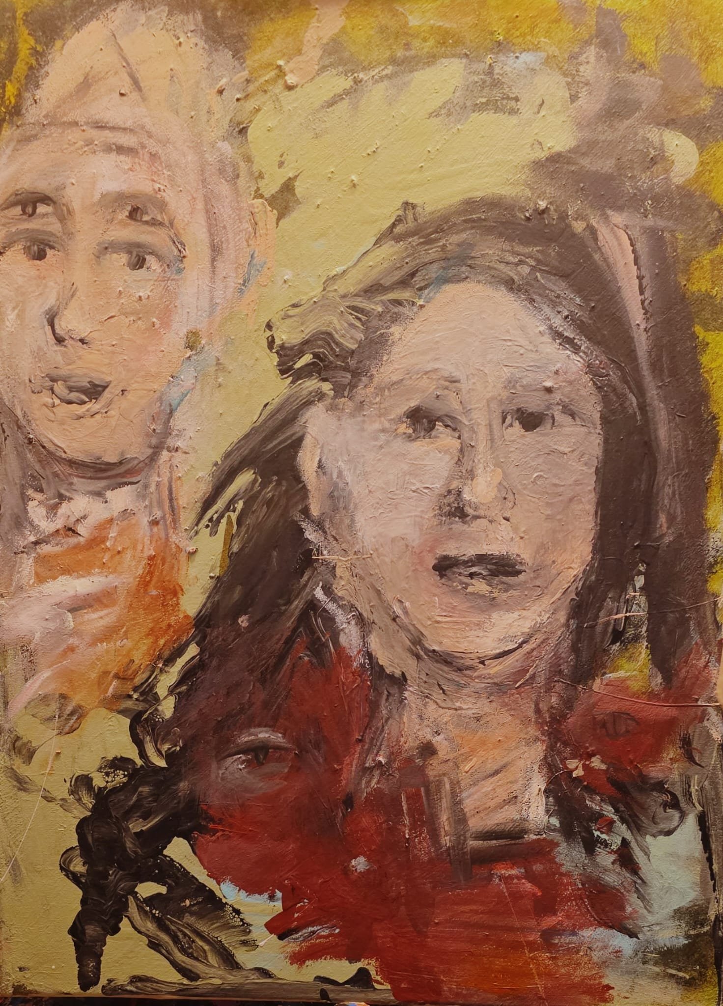 Color becomes symbolic: the reds evoke sacrifice and urgency, while the muted flesh tones dissolve into abstraction, emphasizing the fragility of human awareness. The figures appear as witnesses and messengers, urging repentance before the closing of spiritual thresholds.
