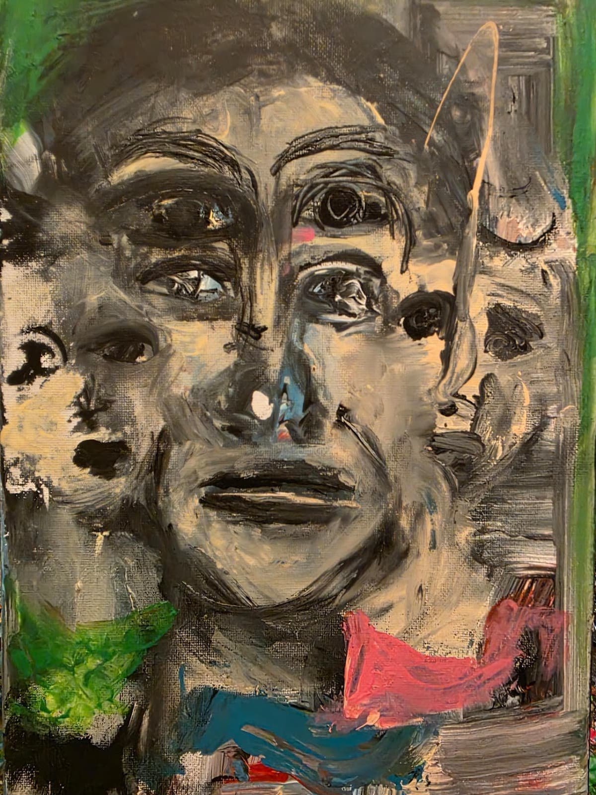 The fragmented face, both inside and outside itself, reveals the solitude of creation — a mind illuminated by inner chaos and quiet faith. Every stroke becomes a heartbeat; every blurred line, a prayer that refuses to vanish.