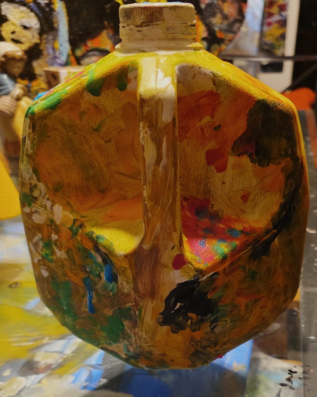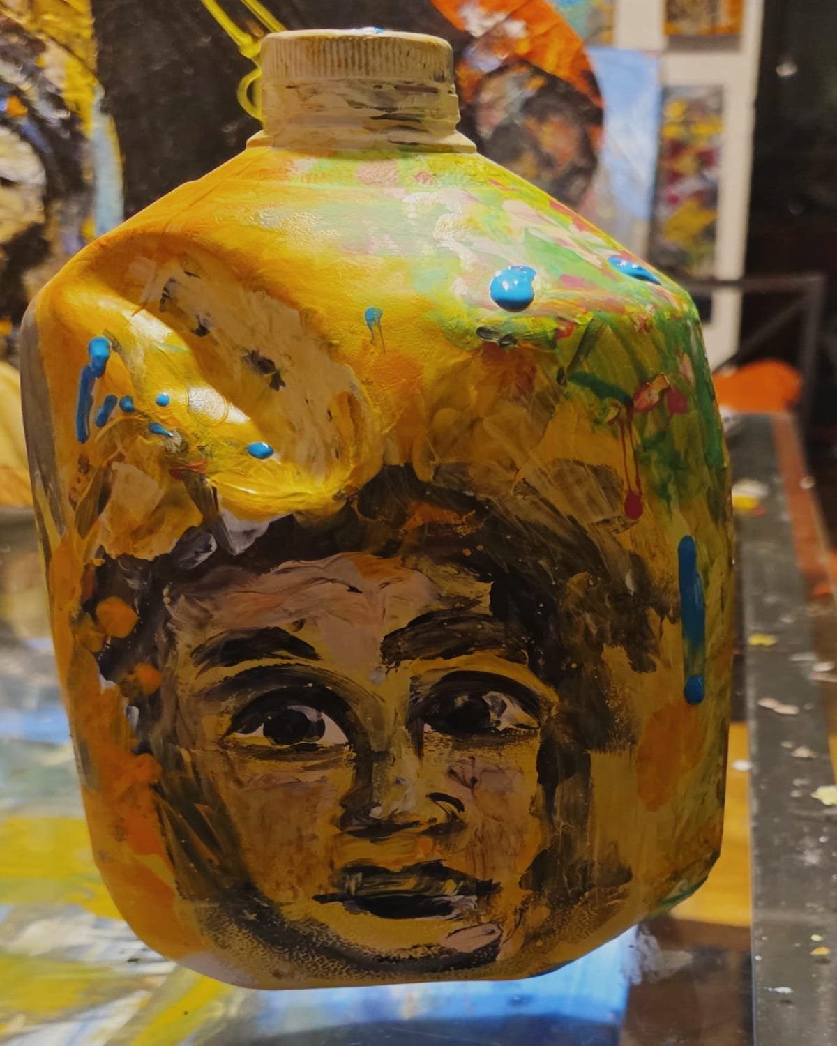 Medium: Acrylic on Recycled Plastic Gallon (Mixed Media)