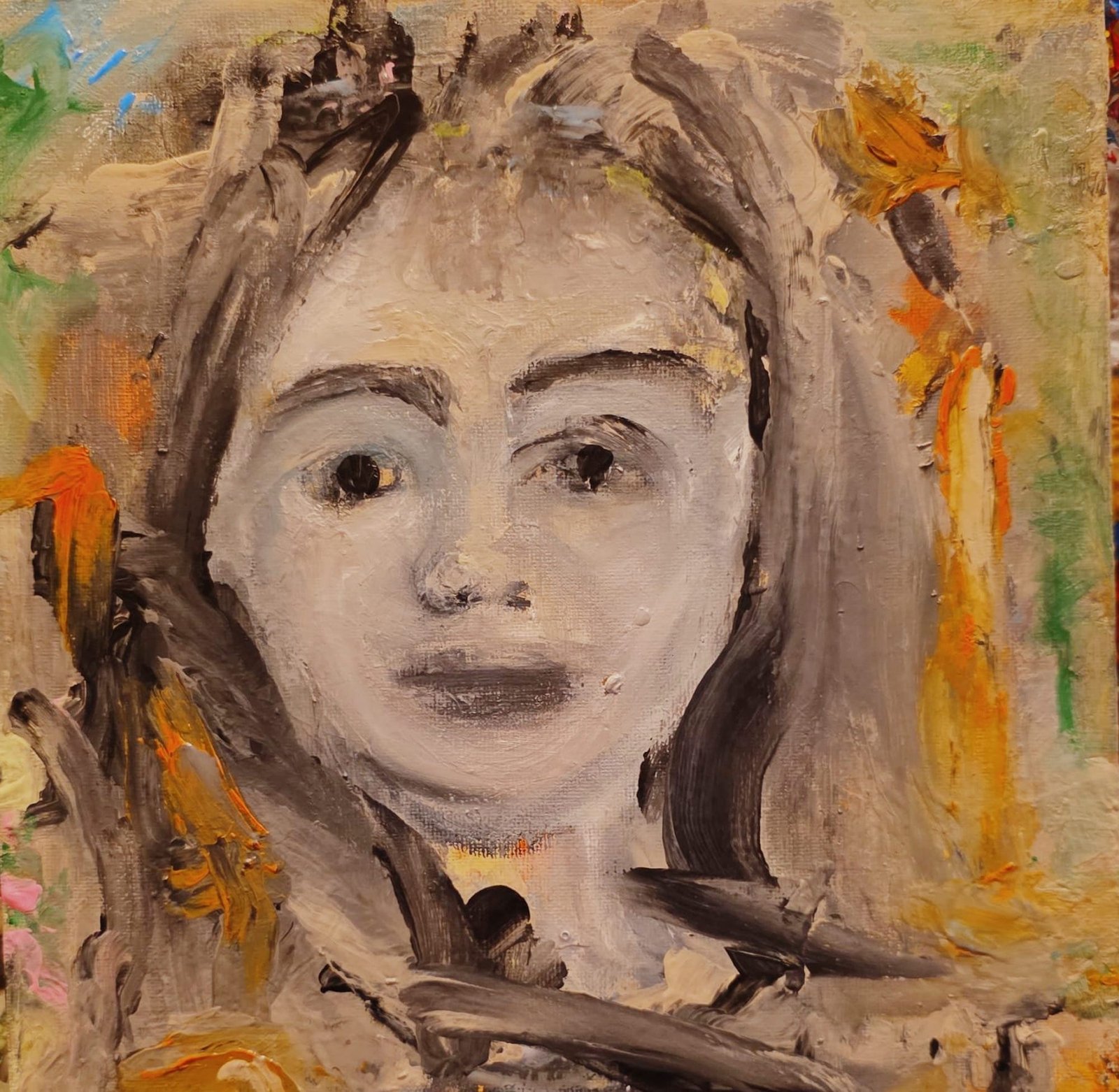 The face, stripped of ornament and immersed in raw materiality, reflects both innocence and endurance. There is no scream, no visible struggle — only a deep, unsettling calm. This calm does not signify absence, but presence: a presence that watches, that knows, that will not forget.