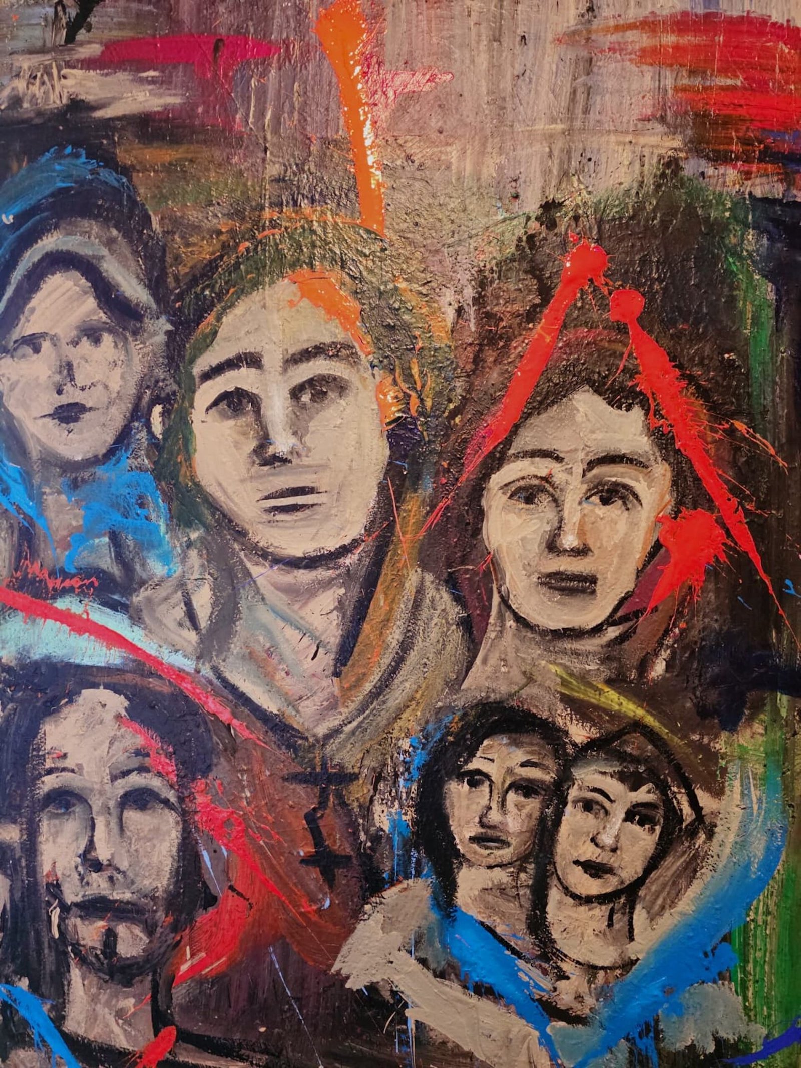 The fragmented faces and layered gestures suggest a humanity suspended between the earthly and the divine, evoking the moment of the Rapture — a passage from the temporal into the eternal. The work resists literal representation, instead channeling spiritual intensity through raw mark-making, textured surfaces, and luminous chromatic interventions.