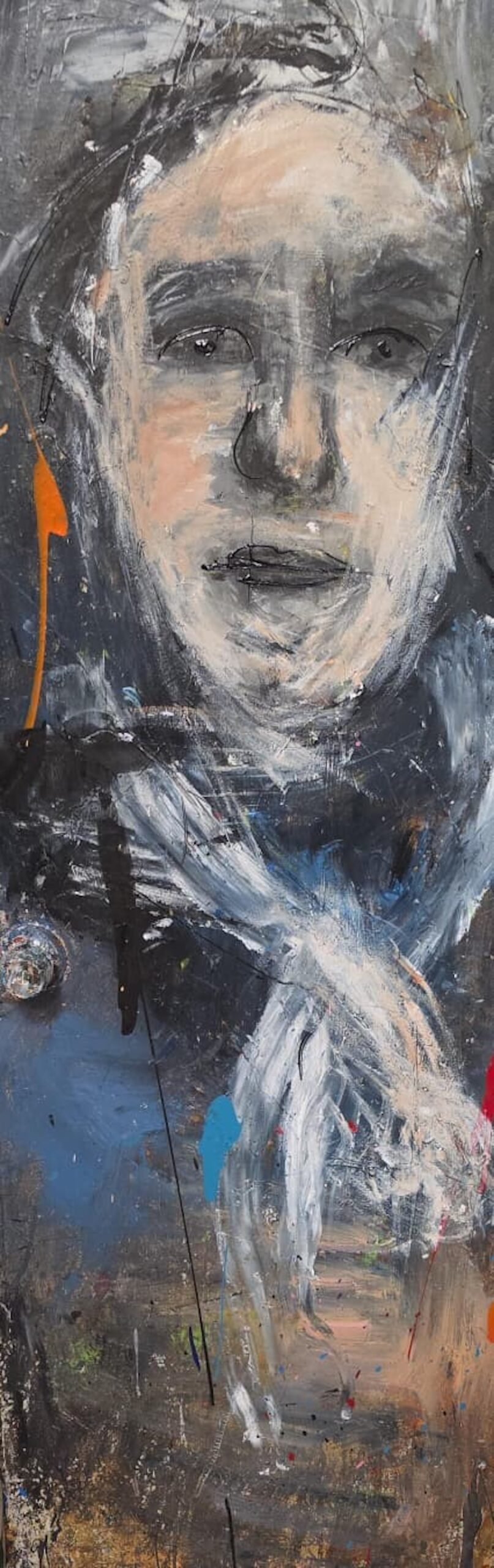 Rooted in German Expressionist figurative language, the angel’s face emerges through gestural strokes, abrasion, and accumulation. The use of remaining materials reinforces the idea that creation does not require excess, only intention. Every trace carries the energy of previous works, allowing the angel to embody creativity itself—born from fragments, intuition, and persistence.