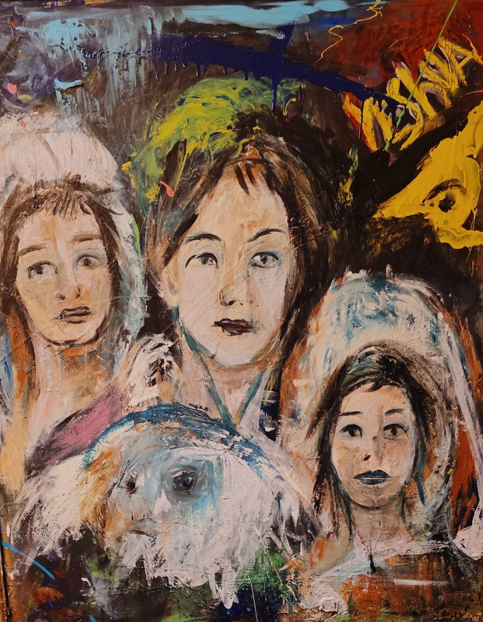 The expressive distortion of faces, raw textures, and layered marks aligns the work with the German Expressionist tradition, privileging emotional and spiritual truth over realism. As the largest mirror in the collection, this piece anchors the entire series, affirming that observation itself is sacred and that art, like angels, exists to reflect what is often unseen.