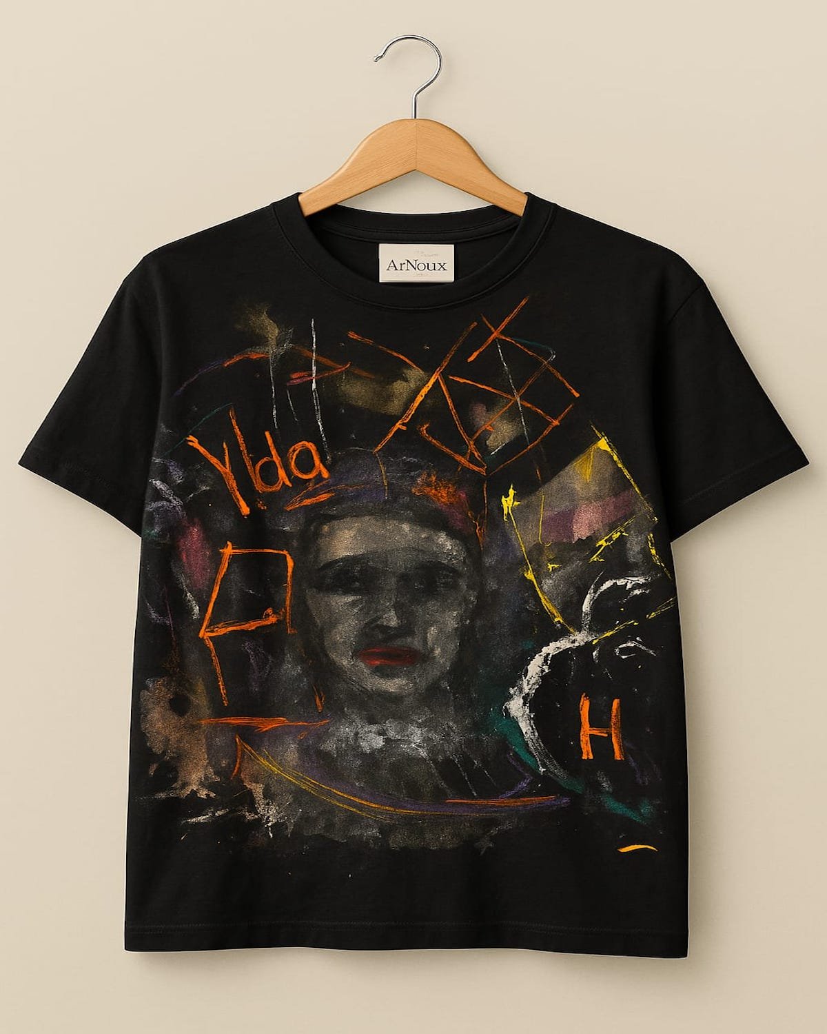 Through Yda H., ArNoUx captures the sacred intersection between gratitude and geometry — an artistic universe spinning with light, faith, and affection. This artwork transforms fabric into a cosmic declaration of eternal love.